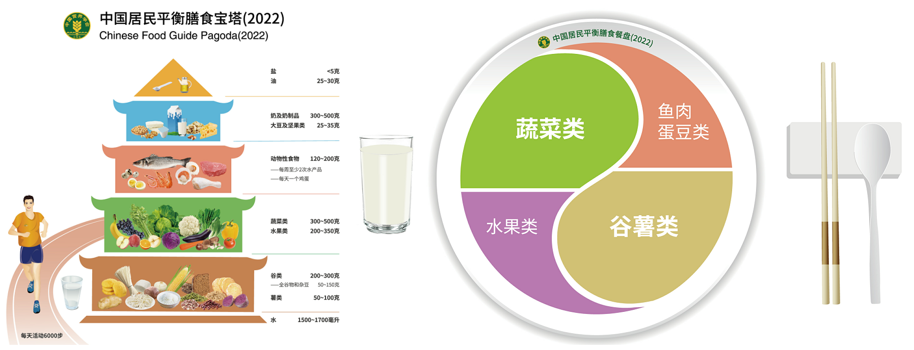 中国居民平衡膳食宝塔、餐盘(2022)图示修订和解析说明