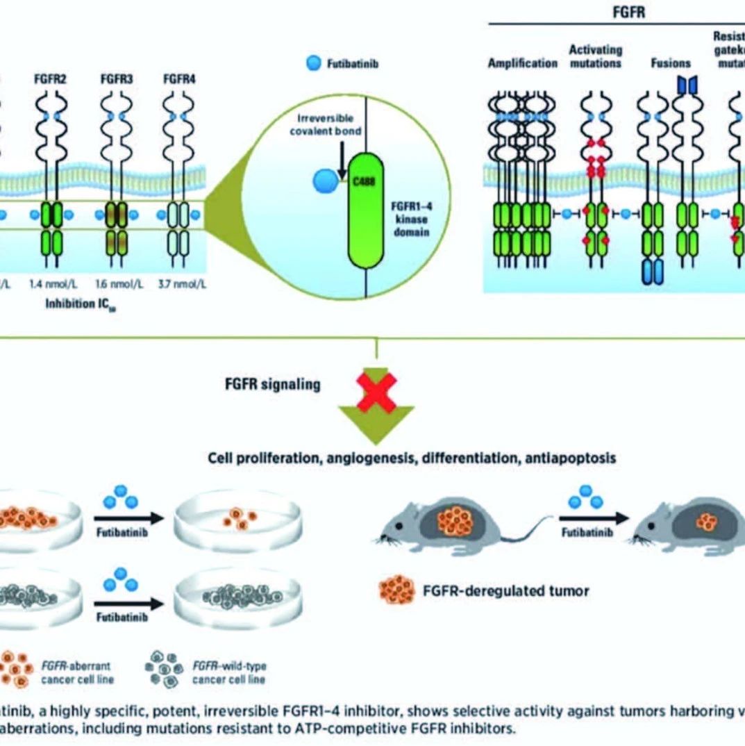 美国麻省总医院癌症中心 Goyal等报告,在成纤维细胞生长因子受体2(FGFR2)融合或重排阳性的肝内胆管癌患者中,使用共价FGFR抑制剂Futibatinib可获得可衡量的临床获益。[N Engl J Med. 2023;388(3):228-239.]FGFR2的改变已成为肝内胆管癌(一种预后差的罕见癌症)有希望的药物靶点。Futibatinib是一种二代共价结合FGFR1~4抑制剂,已被证明对FGFR改变的肿瘤患者具有抗肿瘤活性,并对与ATP竞争性FGFR抑制剂相关的获得性耐药突变具有很强的临床前活性。...