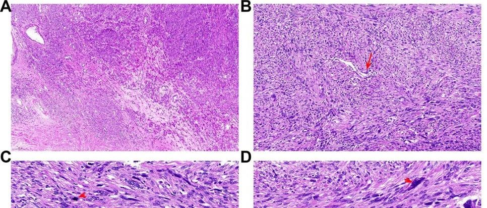 导读第一篇我们简单介绍了伴怪异细胞核的子宫平滑肌瘤(LBN)的由来及分类,今天继续为大家介绍LBN组织病理学及鉴别诊断。一同来学习吧!LBN组织病理学及鉴别诊断组织学评估仍是诊断LBN的主要方法。大体上,LBN可表现为多种颜色及质地,如轻度质软至稍突出切面,直径平均为7cm。LBN是典型平滑肌瘤细胞背景中存在局灶性、多灶性或弥漫性的怪异细胞,这些细胞的特点是中至重度细胞核非典型、核分裂计数低(≤5个/10HPF)但有碎片状细胞核、无肿瘤细胞坏死。怪异的细胞可以是单核或多核,胞质可为嗜酸性或球形,染色质污浊,可有核内假包涵体。该肿瘤境界清楚,偶有梗死型(嗜酸性)坏死。核仁一般小或无,但偶见嗜酸性的大核仁:后者需仔细评估,以排除FH缺陷型平滑肌瘤。...
