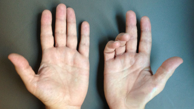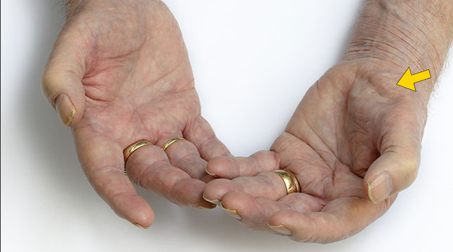 1、一名53岁男性,患有2型糖尿病8年。右手手指弯曲疼痛并有一种“锁定”或“阻滞”感。入院体格检查显示,第四和第五掌指关节间有一个明显的结节。另外,鱼际肌出现萎缩。