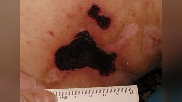 钙化防御在糖尿病控制不佳患者中较为罕见,尤其见于是晚期肾脏并发症。其发病机理尚不清楚,高钙血症、高磷血症、慢性肾功能衰竭、甲状旁腺机能亢进、维生素D代谢产物、血管功能不全、免疫抑制剂的应用都与其有关。鉴别诊断包括慢性蜂窝组织炎、过敏性血管炎、大疱性类天疱疮、棕隐居蜘蛛咬、坏疽性脓皮病、静脉性溃疡和韦格纳肉芽肿病。该病死亡率高达60-80%,尤其是近期患病人群,是溃疡病人群死亡率的2倍。虽然钙化防御通常与弥漫性的血管病理学相关,但据报道其有独有的皮肤侵犯方式。