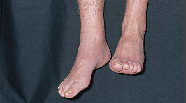 腓总神经是坐骨神经(L4-5, S1-3)的一个分支。出腘窝后,在腓骨头后交叉并侧面经过腓骨颈。因此腓神经极易受到压迫。糖尿病患者足下垂比较常见,因为糖尿病患者已经有了亚临床局部缺血,机械性创伤可使病情恶化。男性通常比女性更易受到影响。运动损伤、髋关节或全膝关节置换术及减肥过度(减肥手术)常引起疾病的发生。外周压迫性神经病的恢复一般需要3个月。鉴别诊断包括腰椎神经根病变、运动神经元病、旁矢状面或皮质下大脑损伤、夏柯氏足和习惯性的腿交叉。