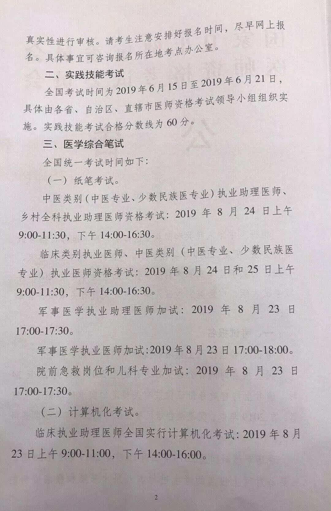 ■ 口腔、公共卫生类别和中医类别中西医结合专业执业医师全国实行计算机化考试:2019年8月24日和25日上午9:00-11:00,下午14:00-16:00。