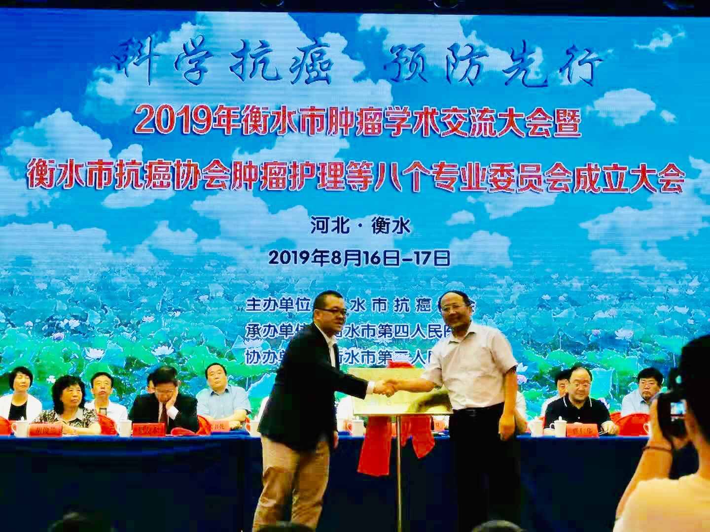 启动仪式在2019年衡水市肿瘤学术交流大会上举行,北京朝阳医院原总会计师、全国著名“医院绩效管理与成本控制”专家张仁华教授、河北医科大学研究生学院院长、河北省抗癌协会副理事长张祥宏教授,上海交通大学第六医院樊友本教授等国内知名学者莅临讲座;衡水市卫健委领导、衡水市医学会领导以及各医疗机构院长和肿瘤专业人员500余人参加了会议。