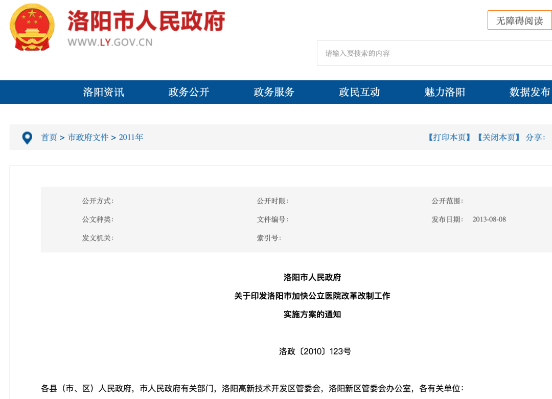 2010 年,全国上下在医改的风潮之中,位于河南西部的神都洛阳也不例外。