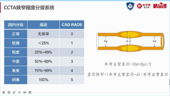图11:面积狭窄与直径狭窄对应关系CTA图像,百闻不如一见。但由于篇幅原因,今天小界就先说到这啦!在接下来的内容中,黄浙勇教授还对CTA图像中次全闭塞和完全闭塞鉴别、斑块性质、伪影的解读判断(排除假阳性)进行了详细讲授。尽管有了报告单,CTA结果也仍需要我们临床医生亲自阅片。因此,想学习更多精彩内容,小界诚邀您扫描下方海报二维码或点击文末阅读原文链接,移步医生站查看完整课程,一起学习,共同进步吧!