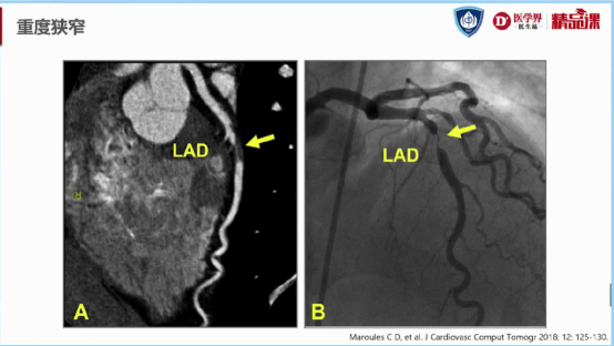 图1:冠脉解剖冠心病的本质是心肌缺血,但目前没有准确的方法诊断心肌缺血,因此以冠状动脉狭窄诊断冠心病,狭窄超过50%则称为冠心病。冠脉血管造影(CAG)是冠心病诊断的金标准,但该方法通过导管检查,属于有创,于是CTA作为CAG的无创替代手段,运用越来越多。CTA阳性预测值80%,阴性预测值≥95%,因此CTA是一种排除手段。假如CTA出现阳性,需要仔细阅片,排除伪像存在。