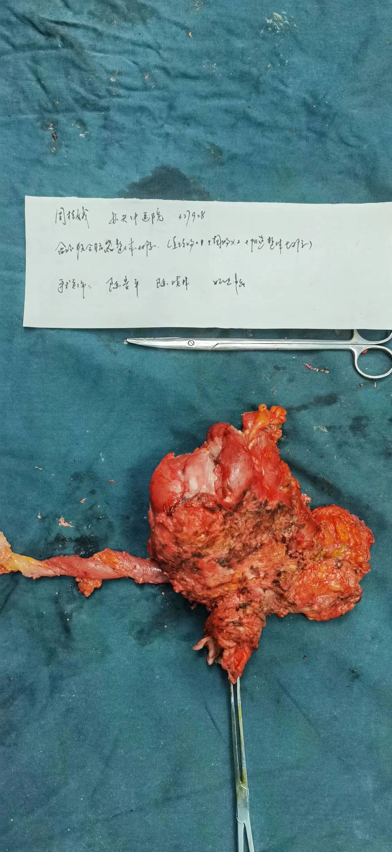 宫颈癌术后放疗后多次手术,发现盆腔巨大肿瘤,行全盆腔整体切除(2节段回肠,结直肠,全阴道切除及肿块整体切除)