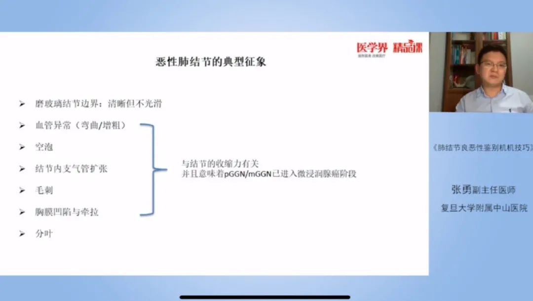 图:张勇老师直播课内容截图如果对每一个小点有疑惑的地方,可以扫描下方二维码下载医学界医生站APP,搜索《肺结节良恶性难区分?鉴别需技巧》课程,听老师的详细讲解。同时课中老师还会教我们肺结节良恶性鉴别要求和在肺结节诊断中需要警惕的方面。扫描下方二维码或点击阅读原文
