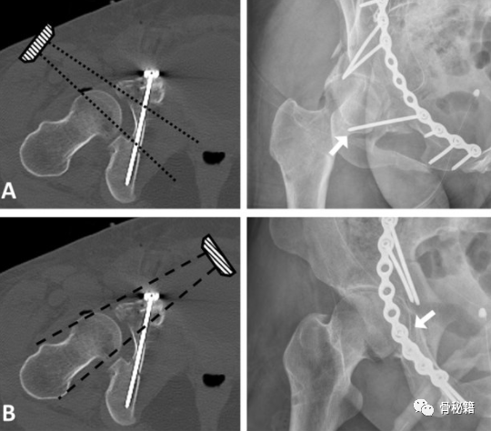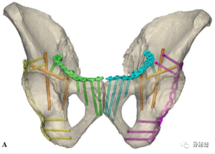 该螺钉的特点是通过前方固定髋臼方形区及后柱。