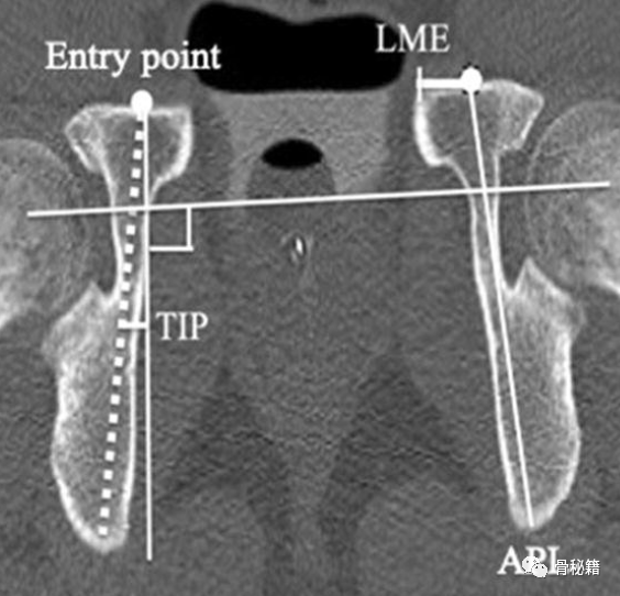 其髋臼内缘最狭窄处即为可通过螺钉的宽度。