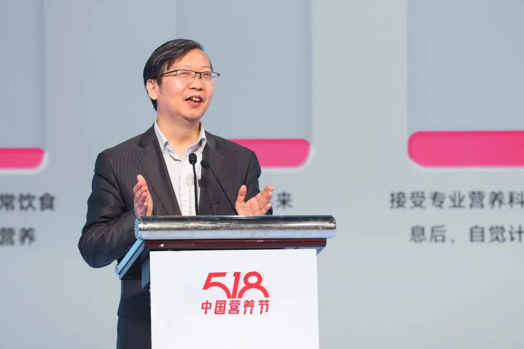 中国营养学会理事长杨月欣到会并讲话,她表示,全民营养周是一个有温度、有营养、受百姓欢迎的大众节日,营养节在此期间举办,相辅相成,繁荣了百姓健康需要。今年营养节提出的“免疫进阶,优选营养素密度高的食物”是对《中国居民膳食指南(2022)》核心信息的继续推广和普及,对帮助大众认识食物、认识营养、提高营养健康消费能力有着重要作用。她号召社会各界的专业力量共同行动起来,通过5月全民营养周、科技周、营养节等活动,传播科学思想,普及科学营养知识,提高全民营养健康素养。
