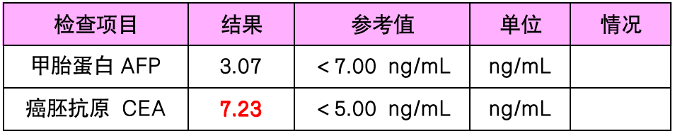 A 老师拿到了单位安排的体检化验单,看到癌胚抗原(CEA)值超越了正常值,心情瞬间变得无比沉重。