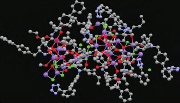 但实际上这个药物是沙库巴曲和缬沙坦按照1:1的比例组合而成的单一共晶体药物,是把沙库巴曲和缬沙坦从分子层面结合到一起了(如下图),所以还是单方药物。