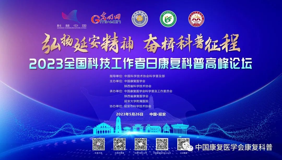 为深入实施“健康中国”发展战略,牢记初心,普及康复知识、弘扬科学精神,培养更多创新型康复人才,在中国科学技术协会科学普及部指导下,中国康复医学会联合陕西省科学技术协会于5月26日在延安联合主办“2023全国科技工作者日康复科普高峰论坛”。