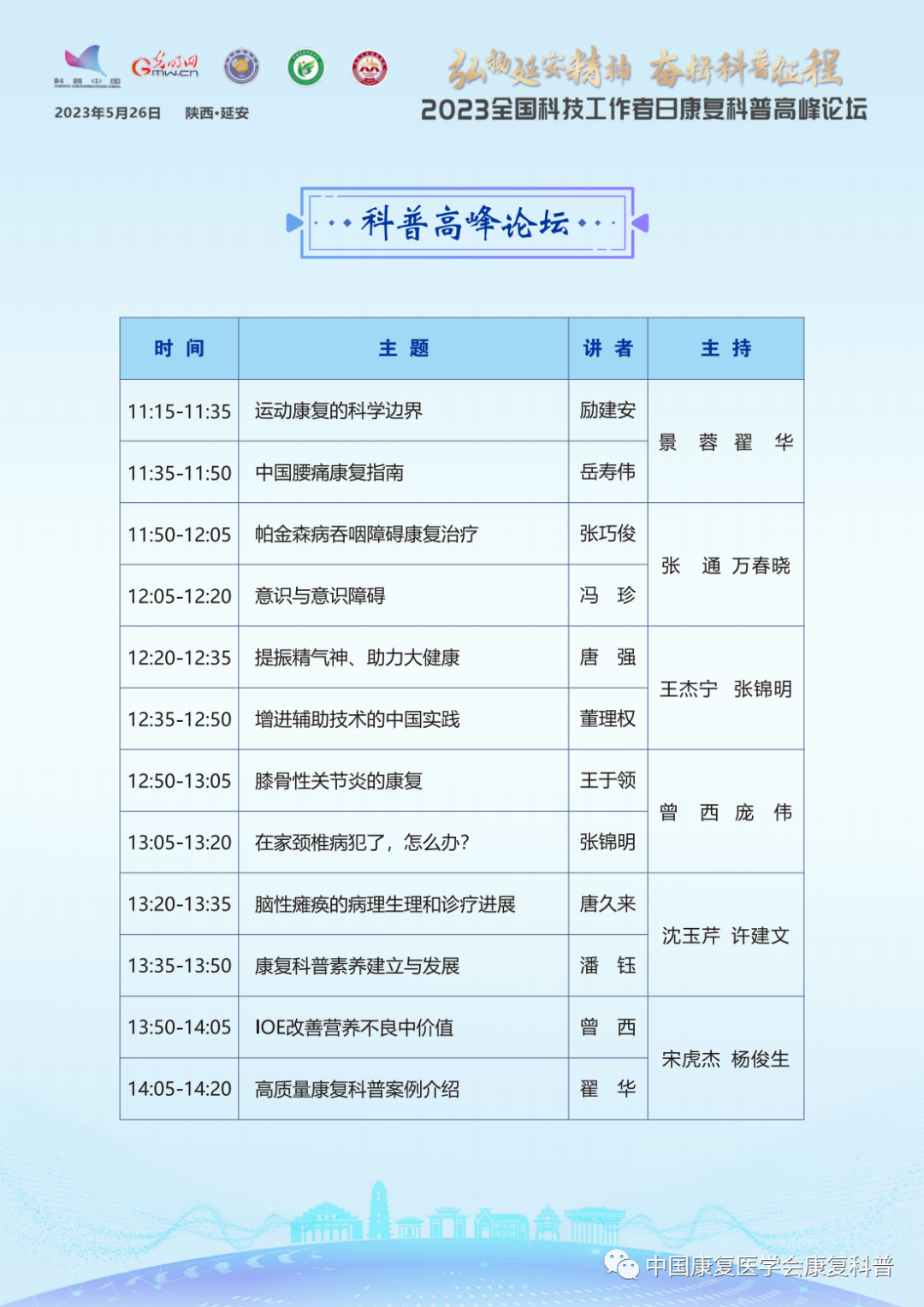直播支持:科普中国、光明网、光明日报、知乎、一直播、百度、康复医学网、康复社、中国康复医学会视频号
