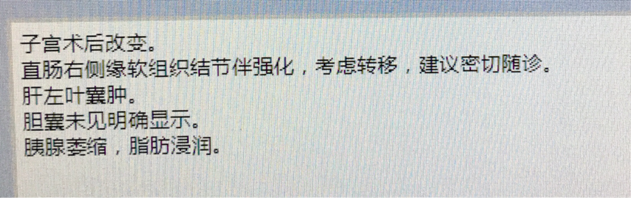 近日,一位来自湖州市的曾阿姨来到浙江省中医院胃肠外科就诊,她告诉医生,自己4年前在当地医院有卵巢恶性肿瘤手术史,一年前检查时发现肿瘤复发,辗转多家医院治疗,但是一月前行MR检查时肿瘤较前增大,医生告诉她只有手术才能解决问题,考虑自己是肿瘤复发,心里非常担心,自己的肿瘤能不能切除干净,会不会复发,后经医生朋友推荐,了解到了浙江省中医院胃肠外科陈贵平主任团队,随即到省中医院就诊。